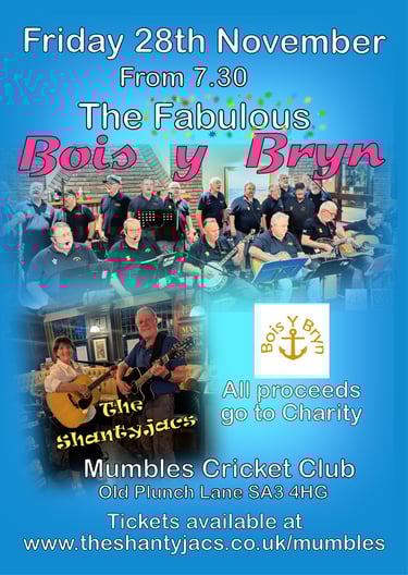 The brilliant Bois Y Bryn will be coming to Mumbles Cricket Club for an evening of Shanties and fun and we will be joining them.